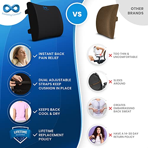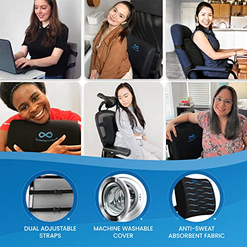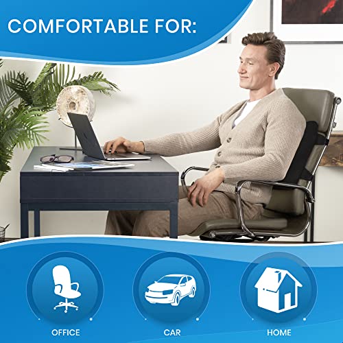 - Offers the Right Amount of Support and Cushion: Made with our proprietary memory foam formula, the lumbar support pillow for office chair provides the ideal amount of support and padding necessary to reduce pressure in your back; cushioning that oftentimes your current computer chair lacks