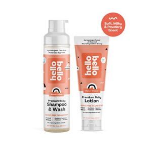 - HELLO BELLO SHAMPOO & BODY WASH. Made with Jojoba seed oil and a blend of botanical extracts, our soothing formula provides extra gentle cleaning for extra dirty babies.
