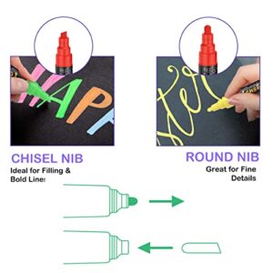 - 12 vibrant colours: Liquid chalk markers. Perfect for DIY and craft projects. All colours are extremely pigmented, vivid and durable. The reversible tip makes it easy to do both good and bold work.