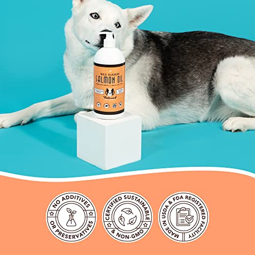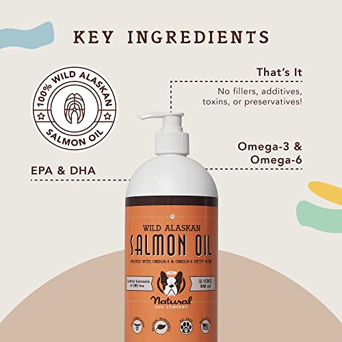 Natural Dog Company Wild Alaskan Salmon Oil for Dogs (32oz) Skin & Coat Supplement for Dogs, Dog Oil for Food with Essential Fatty Acids, Fish Oil Pump for Dogs, Salmon Oil for Puppies, Wild Fish Oil