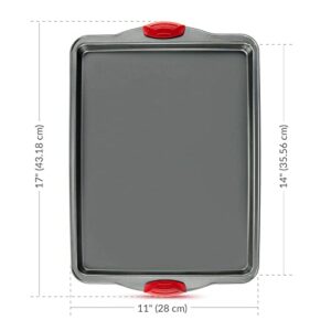 • 3-IN-1 BAKING SHEET SET – Sheet pans External Dimensions: 17” long x 13” wide x 0.9” deep, [internal size] 14” x 11” x 0.8
