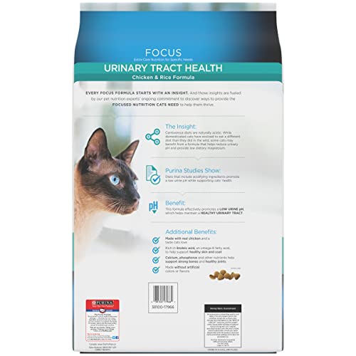 Details: Serve your cat targeted nutrition and delicious flavor with Purina Pro Plan SPECIALIZED Urinary Tract Health Formula adult dry cat food. Our cat urinary care food formula helps your cat maintain her urinary tract health by reducing urinary pH and providing her with low dietary magnesium. Linoleic acid, an omega-6 fatty acid, goes into this cat dry food to help maintain her healthy skin and coat, and it supports her strong bones and healthy joints with calcium, phosphorous and other nutrients. Made with real chicken, this dry food for cats delivers a tasty meal every time, and it’s made with no artificial colors or flavors. We choose each high-quality ingredient for this adult cat food to have a specific purpose, so you know she’s getting extra-care nutrition with each serving. When you choose this Purina Pro Plan formula, you’re choosing nutrient-rich meals for your favorite feline in a tasty dry cat food formulated to meet her unique urinary tract health needs.