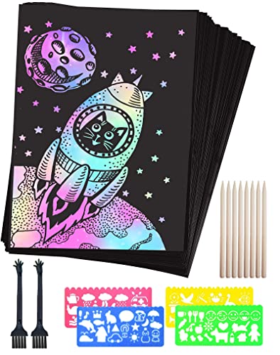 - Accessories Included – Get the party started with these party favors for kids and adults! It comes complete with arts & crafts supplies including 4 art stencils and 8 wooden styluses for scratch art.