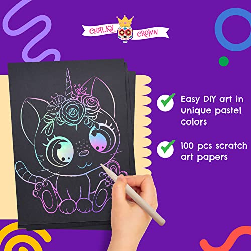- Dreamy Pastel Doodle Paper – Craft your heart out with Chalky Crown’s pastel scratch art paper for kids! Made with beautiful pastel colors, spend your days doodling with this beautiful art kit and scratch paper set filled with whimsy and fun!