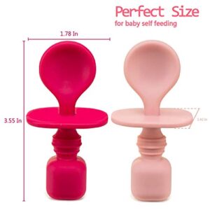 - FIRST STAGE SPOONS. As your baby is transitioning to solids, these silicone spoons will aid in developing their skill of self-feeding and at the same time, sharpening their motor skills. It is designed with those tiny hands in mind, so it should be easy to grasp and soft to touch.