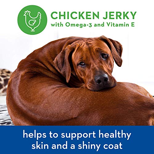 - ALL NATURAL: Our Chicken Jerky Skin + Coat treats are made with antibiotic-free chicken plus Omega-3-rich flaxseed and vitamin E to help support healthy skin, a shiny coat, and a happy dog.