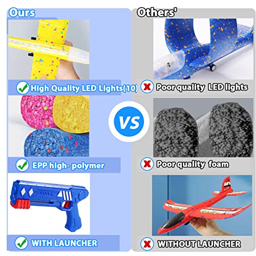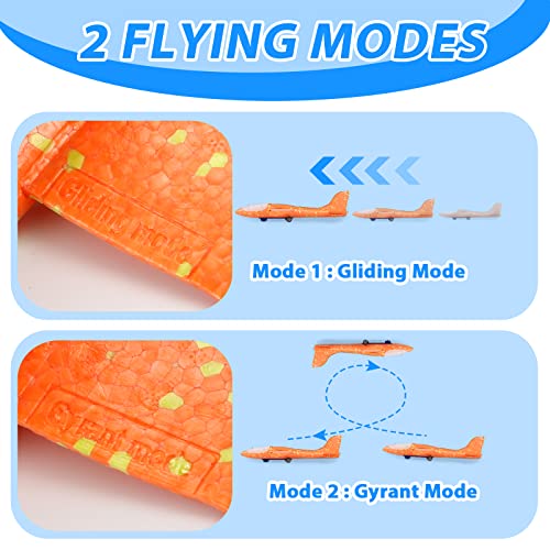 - *3 Pack Airplane Launcher Toys* – Our glider plane toy is equipped with 1* Launcher(red or blue) & 3 gliding foam planes ,(blue , orange & red). Throwing the airplane by hand or fly them with airplane launcher,