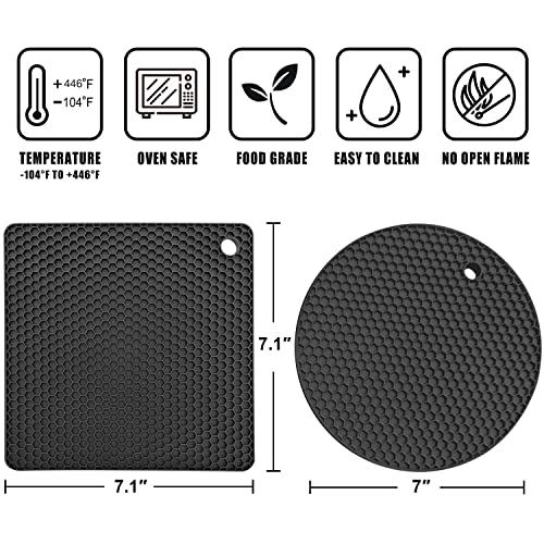 - 【NON-SLIP AND HIGH HEAT RESISTANT】These trivets for hot dishes are heat-resistant temperature from -104℉ to 446℉, Protect your countertop or table from hot pots, hot pans, hot dishes coming out from the microwave or stove. Premium silicone trivet have strong grip which can ensure nothing slide off.