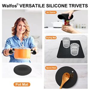- 【HIGH-QUALITY SILICONE AND FOOD SAFETY】Walfos hot pads for kitchen are made of 100% food grade silicone, BPA free, flexible and durable. Premium silicone material ensure that they won’t rust, crack or chip and it is not as heavy as metal trivets.
