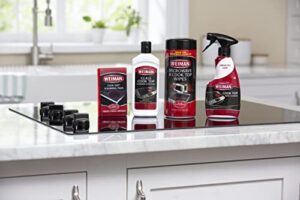 Details: “Enhance the natural beauty of cooktop surfaces in your home with the Weiman complete cooktop cleaning kit. This bundle pack includes the Weiman glass cook top cleaner & Polish, scrubbing pad, Cleaning tool and cook top razor scraper; engineered with a streak-free, non-abrasive formula to clean, shine & protect all glass/ceramic/induction cooktop, countertop & bar surfaces without scratching or damaging your appliances. The Weiman complete cooktop cleaning kit is made in the USA & designed with a gentle, yet effective formula that safely cleans up stubborn stains, splattered food & greasy, oily residue to revitalize and maintain your surfaces that keeps your kitchen shining brighter and longer. Scrape away tough spills with the cooktop razor and buff away with the cooktop scrubbing pad. Specially formulated to remove grease, grime, dirt & fingerprints while also made to easily cut through the toughest burned-on food & baked stains, allowing you to achieve the perfect results your home deserves. A unique, non-toxic formula, safe to use regularly on any smooth top range, electric flat top grill, induction grill and all Radiant, halogen glass, ceramic or glass cooktop. Safely remove even the worst burned on foods and make cleaning easier and faster, The Weiman complete cook top cleaning kit is an essential for everyday treatment. Weiman products is the perfect home, chef, pro, scratch resistant, cleansing, household, professional, and at work solution for all of your cooktop cleaning and buffing needs. About us Weiman wants each of the surfaces in your home to look its best. That’s why we have developed cleaning products that go beyond simply cleaning to beautify and protect each of your delicate, difficult to care for surfaces. From stainless steel to leather to granite, each of our products is formulated specifically for one surface and one surface only; allowing you to achieve the perfect results that your home deserves. “