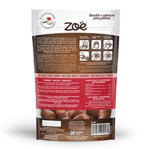Details: Here’s a winner with meat-lovers. These chewy and soft dog treats combine real beef and ginger that masks medication taste to help dogs accept them fuss-free. Zoë Pill Pops are highly palatable dog treats and medication aids that take the stress out of giving medication to dogs. The dog treats are individually wrapped in 2’s to maintain their moist texture once the bag is open. Zoë Pill Pops come in three delicious flavors to appeal to all dog’s tastes. The flavors include: Roasted Chicken with Rosemary, Grilled Beef with Ginger, and Peanut Butter with Honey. Healthy, North American ingredients mean you can feel confident you are “treating” your pet well. You will receive one 3.5 oz. package of Grilled Beef with Ginger Pill Pops. Ingredients: Barley flour, beef, vegetable glycerin, molasses, whey protein, natural ginger flavor, ginger, xanthan gum, citric acid, mixed tocopherols. Zoë Pill Pops are puppy and adult dog treats. Feed as treat or use as pill cover. Use one Zoë Pill Pop for tablets, use two for capsules. Recommended daily intake of 1 to 2 Pill Pops per day. Store out of direct sunlight in a cool, dry place. What goes into a name matters and a name well chosen should convey a product’s principal benefit. Translated from Greek, Zoë means life, and an energy-filled, healthy life is what all pet parents want and all pets deserve. That’s why Zoë pet food products are packed full of nature’s “good for them” ingredients. Zoë is focused on creating natural pet food products for a healthier, more active, fun-filled life. When you feed Zoë to your pet, you can be confident that you are treating them well. Life is too short to be serving average dog food. For some people life is about how much they have going on. But it’s also about life’s simple pleasures, like the time you take with your dog. The kind of moments that show them how much you love them so that they can love you back. And love is what Zoë is all about. Pure and simple food with natural ingredients that come in a variety of fun flavors your pet will love. Mix them up so your pet doesn’t give you the “I’m bored look” at mealtime. They’ll love you for it. Make it good. Make it healthy. Make it with love. Make it Zoë.
